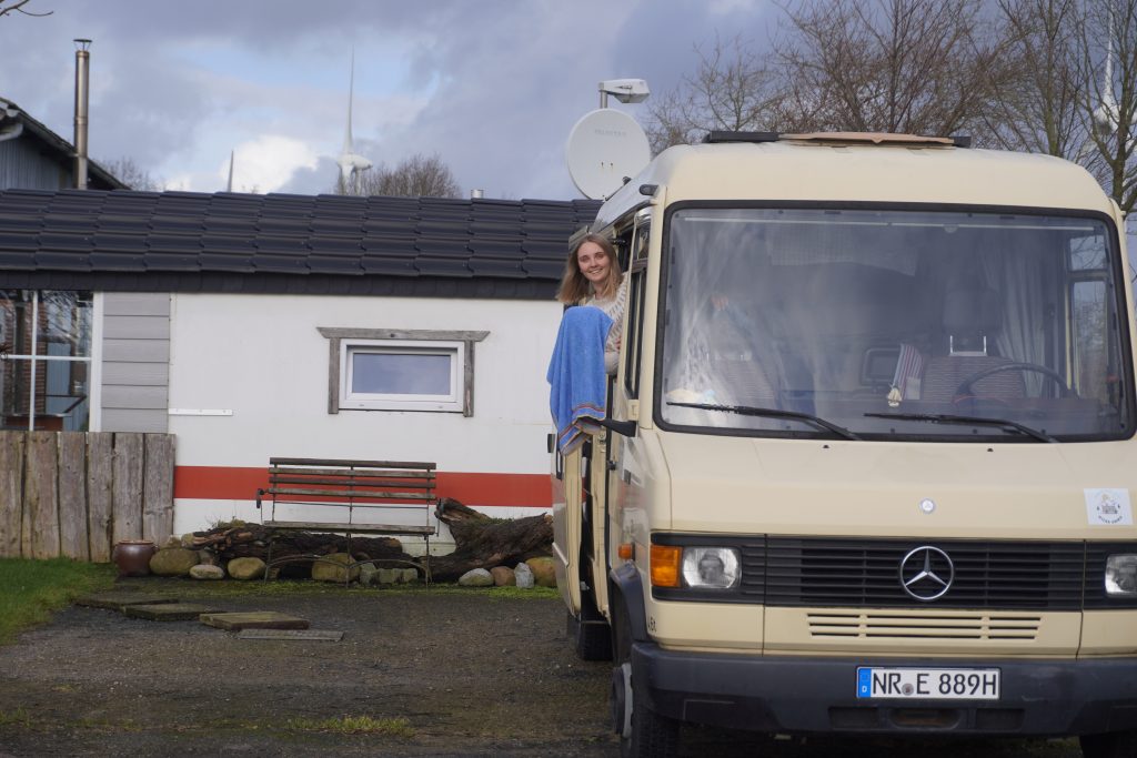 10.2.22 Moin moin aus Hamburg. Bei immer noch bescheidenem Wetter fuhren wir weiter. Natürlich mussten wir auch wieder Tanken. Und dann am Himmel etwas Wunderschönes, die Sonne. Wir bummelten also durch das flache Nordland bis wir an einem Gehöft ankamen, dort lebt ein sehr netter Mann und seine Frau, die neben Nähgeschäft und Autoreparatur auch noch Stellplätze vermieten. Dort luden wir unsere Batterie und unseren Wassertank. Von den beiden Betreibern gab es oben drauf noch selbstgebackenes Brot.