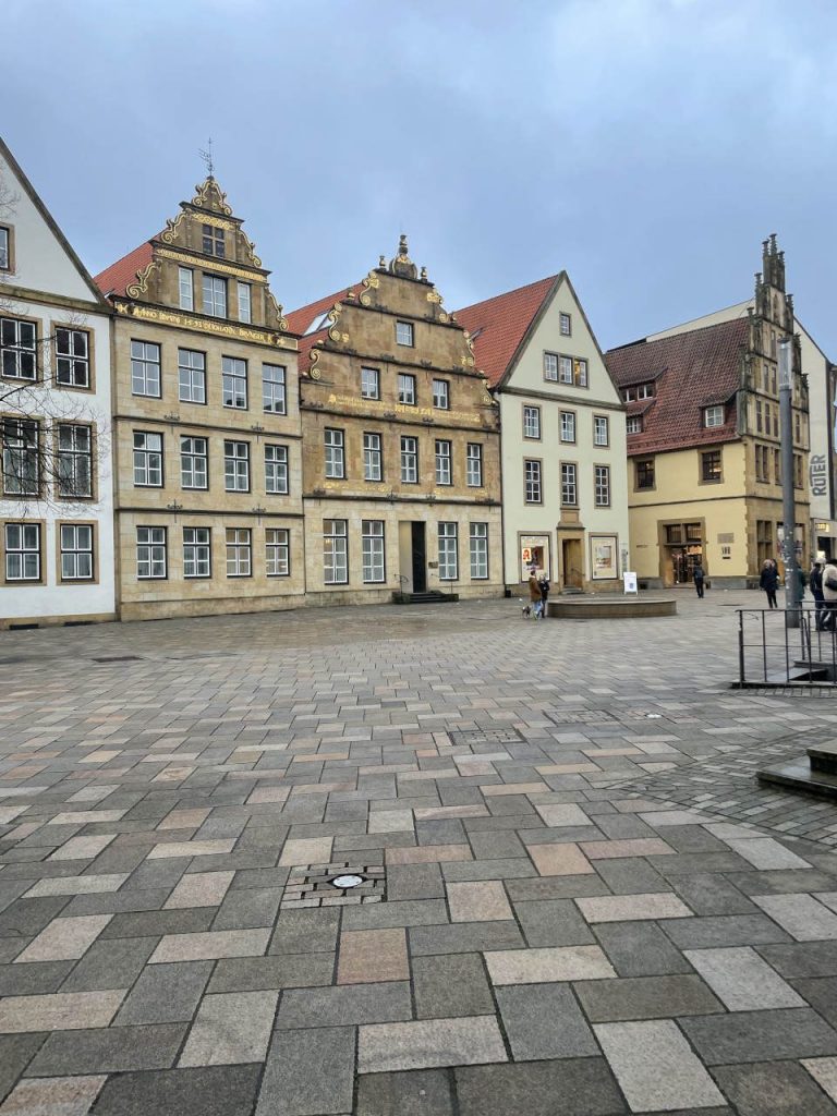 8.2.22 Die restliche Nacht gab es keine Zwischenfälle mehr. So konnten wir am nächsten Morgen in Richtung Bielefeld starten. Wir fuhren die Autobahn immer weiter bis endlich da waren. Unser nächster Platz lag an einem Fußballplatz im Stadtteil Bethel. Wir gingen in die Altstadt Bielefelds, welche auch bei dem trüben Wetter sehr sehenswert war.