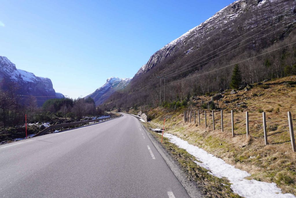 5.3.22 Da wir dank dem Wetterbericht wussten, dass es kein schönes Wetter geben sollte, machten wir unsere Kilometer und fuhren Richtung Schweden durch das Land. Wir nahmen die Fähre zwischen Hjelmeland und Nesvik, und fuhren dann durch die Berge weiter. Die Straßen waren äußerst schmal und von hohen Schneewänden umgeben. Es ging bergab und bergauf. Kurz vor einem Tunnel mitten in einem Tal hielt uns dann ein Mann in Warnkleidung an und wies darauf hin dass wir dem Follow Me Fahrzeug folgen mussten. Dieses begleitete uns durch den Tunnel, in welchem sich eine Hebebühne mit Arbeitern befand. Wir übernachteten in einem Ort namens Roldal auf einem Campingplatz, welcher sich so wie der Rest des Ortes auch, in extremen Schneemassen befand.