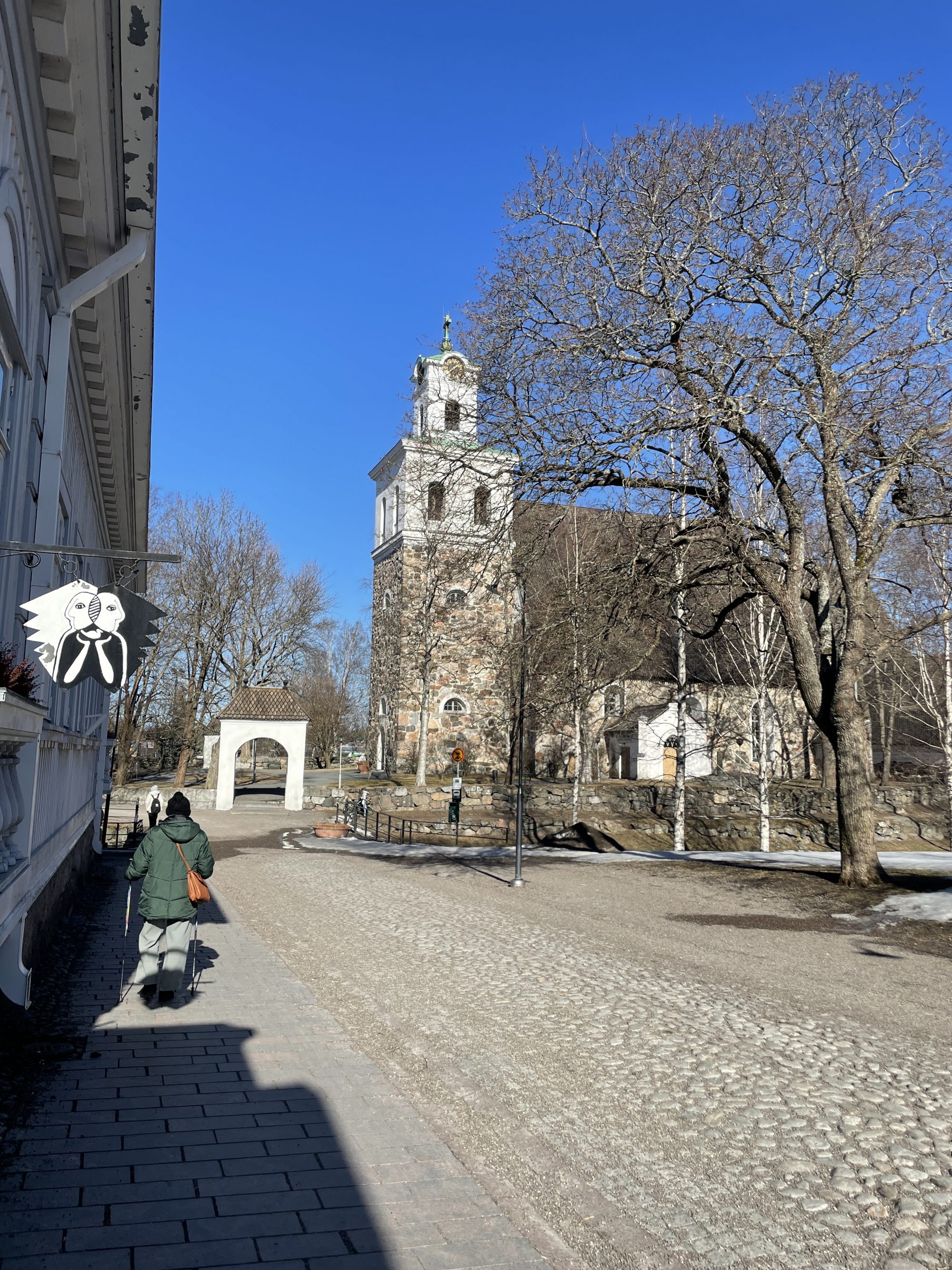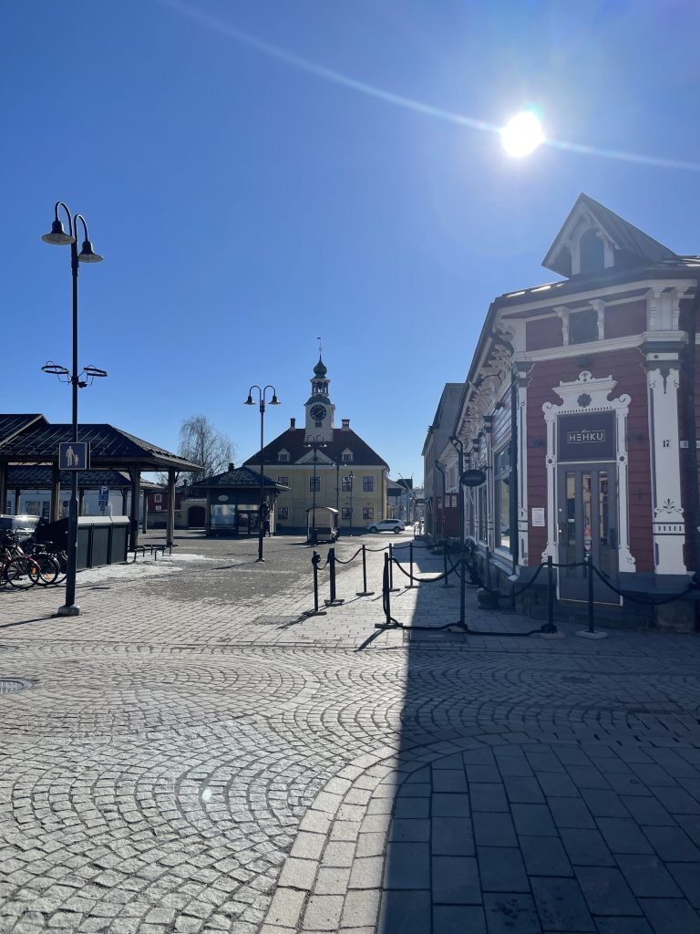 21.3.22 Am Morgen sahen wir dem Sonnenaufgang zu. Es war wunderbar. Daraufhin fuhren wir zur Kleinstadt und Weltkulturerbe Rauma. Die Altstadt war voll mit bunten sehr alten Häusern und wir besuchten die Kirche des Heiligen Kreuzes. Eine schöne kleine Ortschaft. Später fuhren wir noch ein Stück und stellten uns an einen Fluss.