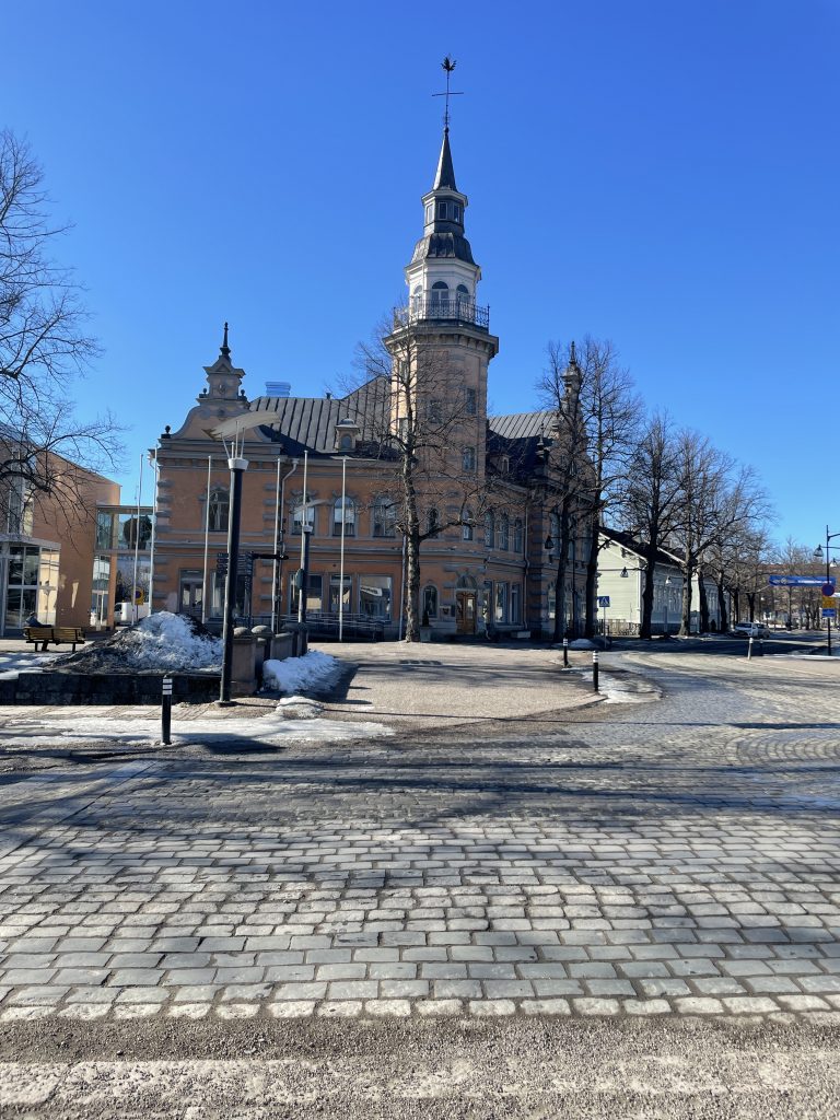 23.3.22 Circa eine halbe Stunde liefen wir an diesem sonnigen Vormittag in die Innenstadt von Tampere. Vorbei am Rathaus und der Alten Kirche von Tampere bis zum Spionagemuseum, welches sich im alten Fabrikgelände von der Firma Finlayson befindet. Dann über die Brücke zum Dom von Tampere, ein sehr eindrucksvolles Gebäude, welches eher an eine mittelalterliche Burg erinnert. Viele Kirchen und Dome sind in Skandinavien schlicht gehalten, wenig Gold und Prunk. Nach dem Dom begaben wir uns nochmal zum Werksgelände, um auf dem Skywalk einen Ausblick über die Umgebung zu erhaschen.
