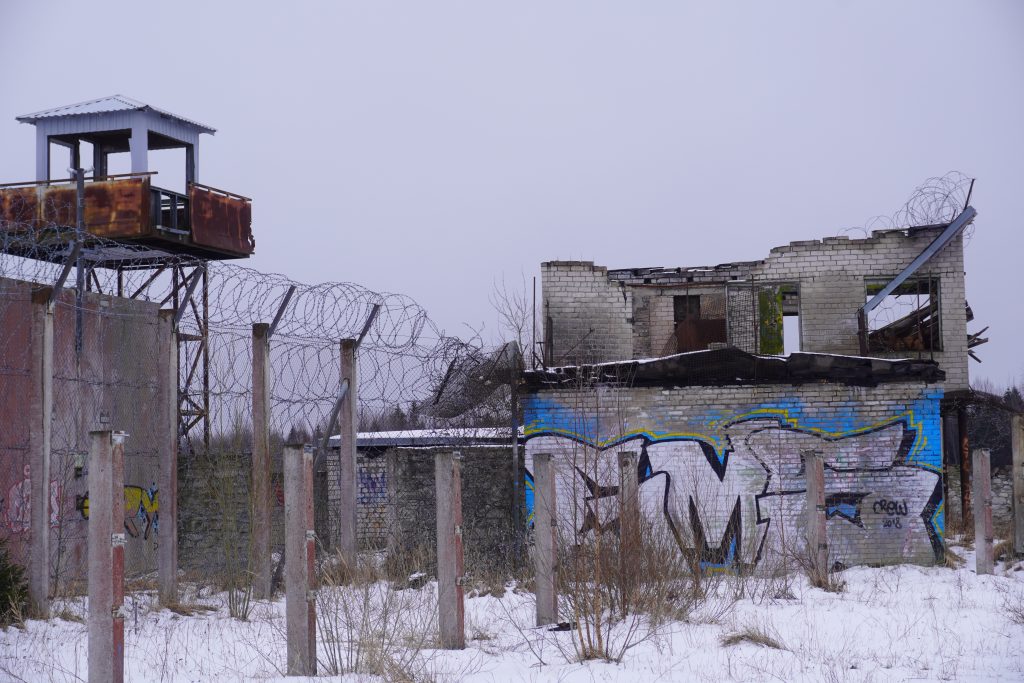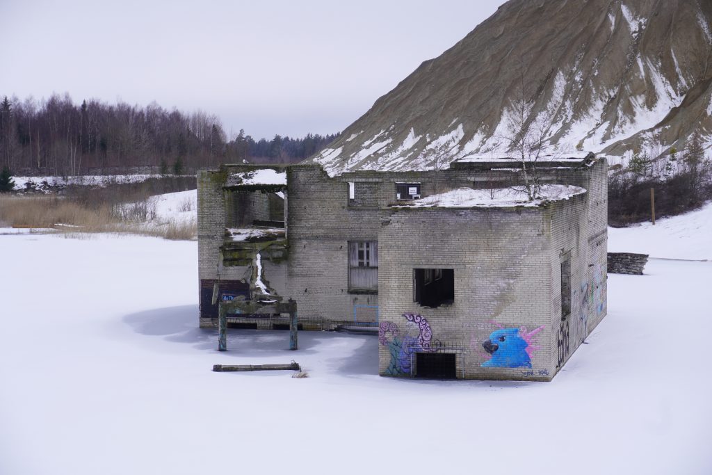 Wir lasen auf dem Schild, dass man die Tickets online erwirbt und dann per Anruf das Tor aufgemacht bekommt. Das war sehr unkompliziert und wir konnten passieren. Wir waren ganz alleine auf dem Gelände, welches von hohen Stacheldraht Mauern gesäumt wurde. Das Gefängnis befand sich direkt neben der Abbaustelle und die Insassen mussten früher im Tagebau schuften. Als das Gefängnis geschlossen wurde, stoppte auch der Abbau und mit ihm die Pumpen, die das Bergwerk trocken hielten. Erhalten blieben ein See und die alten Gebäude mitten im Wasser. Im Sommer gibt es dort ein Bar, einen Strand und die Möglichkeiten zu Tauchen und mit dem Wakeboard herumzudüsen.
