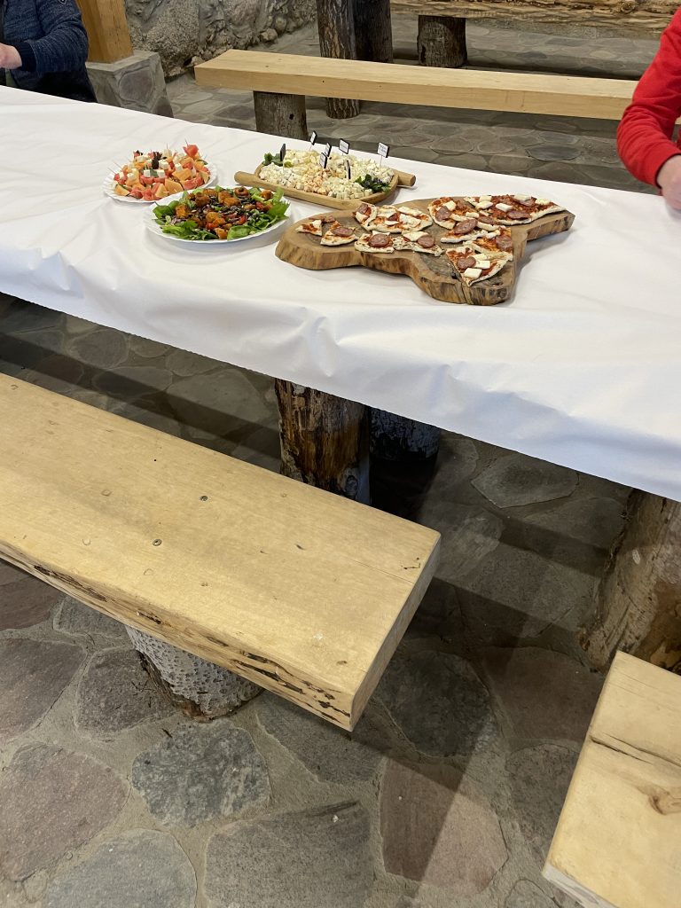 18.5.22 Das dieser Tag besonders werden würde, wussten wir am Morgen noch nicht. Wir standen über Nacht in einem Waldstück vor dem Städtchen Augustow. Da wir einen Ölwechsel machen mussten, suchten wir eine Werkstatt und fuhren diese an. Die erste hatte keine Zeit, die zweite aber sagte uns, dass sie das sofort machen würden. Perfekt! Wir warteten also circa eine Stunde, dann war auch schon alles gemacht. Danach noch Sprit tanken und weiter ging es. Nach 40 Minuten Fahrt kamen wir an eine alte Festung, neben welcher wir parkten. Wir waren grade angekommen schon kam eine polnische Reisegruppe an. Als sie ausgestiegen waren, kam einer von ihnen an unser Auto und bot uns an mit ihnen eine Führung und einen Workshop zu machen. Wir bejahten. Und so schlossen wir uns der Gruppe an, zur Begrüßung gab einen Schnaps und Brot aus dem Steinofen. Dann ging es zu einer Windmühle im Kulturzentrum Korycin- Milewszczyzna. In diesem Park befinden sich Gebäude und Relikte verschiedener Epochen, die aber alle genau an diesem Ort zu finden waren. Es ging also zuerst über die Wallanlage durch die Ruinen des Herrenhauses zur Windmühle. Danach noch über die Straße in rekonstruierte Stallungen aus dem Mittelalter, dort gab es eine Veranschaulichung der Webkunst und wir durften selbst Armbänder flechten. Danach wurden alle zusammengerufen und es wurde Korycinksi Käse hergestellt. Dieser Weichkäse ist einer der bekanntesten Käsesorten Polens und stammt aus der Region. Dann wurde es noch besser und wir kochten zusammen mit den Teilnehmern diese Polen-Litauen Austauschs. Es gab mittelalterliche Pizza, Käse-Melonen-Minze Spieße, Suppe mit Fleischbällchen und gefüllte Gurke. Und Schnaps, der scheinbar irgendwo in der Umgebung selbstgebrannt wurde. Wir wurden natürlich ausgefragt, über unsere Reise, es war aber sehr schön sich mit solch netten Menschen zu unterhalten. Gegen Abend kehrten wir dann mit unserem selbstgemachten Käse und Brot aus dem Steinofen zurück zum Van.