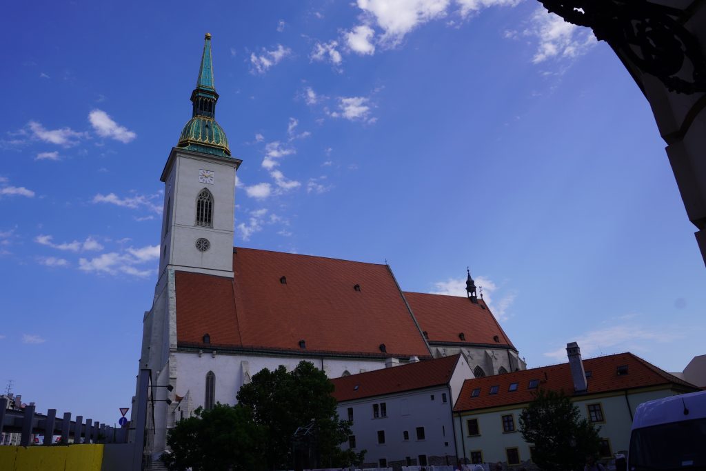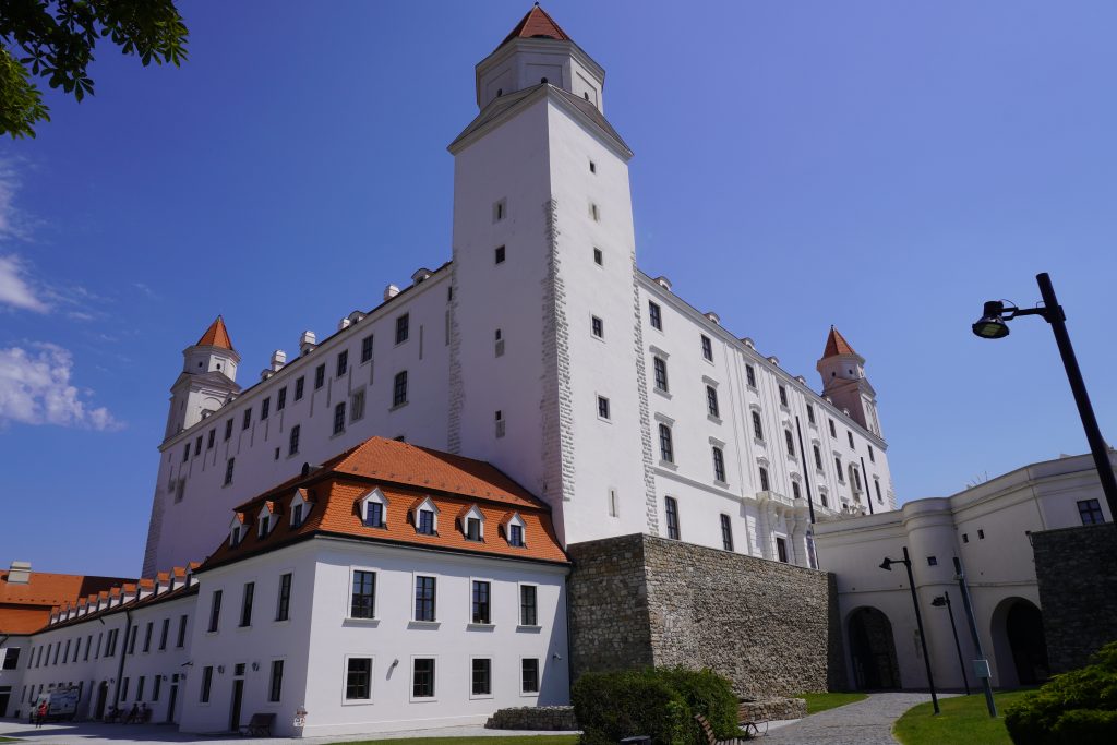 30.6.22 Wir fuhren mit der Bahn zum Zentrum und liefen durch die Altstadt. Wir gingen an verschiedenen Kirchen vorbei, dem Rathaus und kamen dann am Präsidentenpalast an. Von dort fuhren wir mit dem Bus zur Burg Bratislava, ein sehr schöner Bau, von wo man die Stadt überblicken kann. Die Sonne brannte unermüdlich auf uns nieder. Am Nachmittag fuhren wir dann aus der Stadt bis zu einem Platz kurz vor der Grenze zu Ungarn.