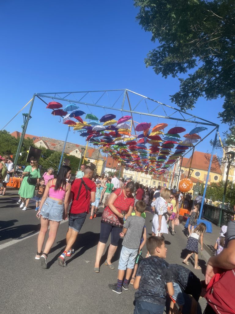 2.7.22 Am Mittag fuhren wir in die Stadt Györ. Dort fand ein riesiges Fest für Kinder statt. Es waren sehr viele Leute dort, es war lebendig.