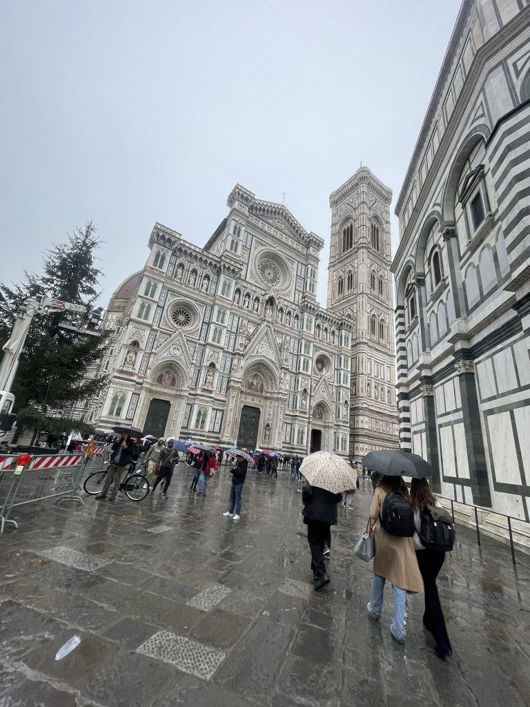 3.12.22 Bevor es weiter ging nach Florenz hielten wir am Mittag bei dem Metzgerwagen von Dario Cecchini, wo es vorzügliches Fleisch gab. Selbst im Regen war die Hauptstadt der Region Toskana hübsch anzusehen.